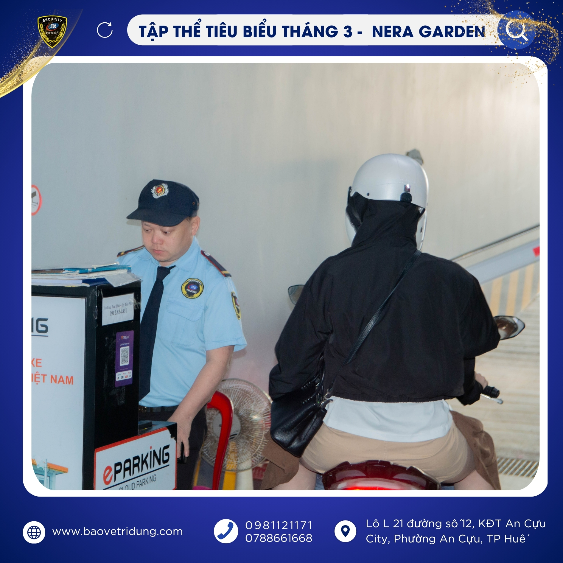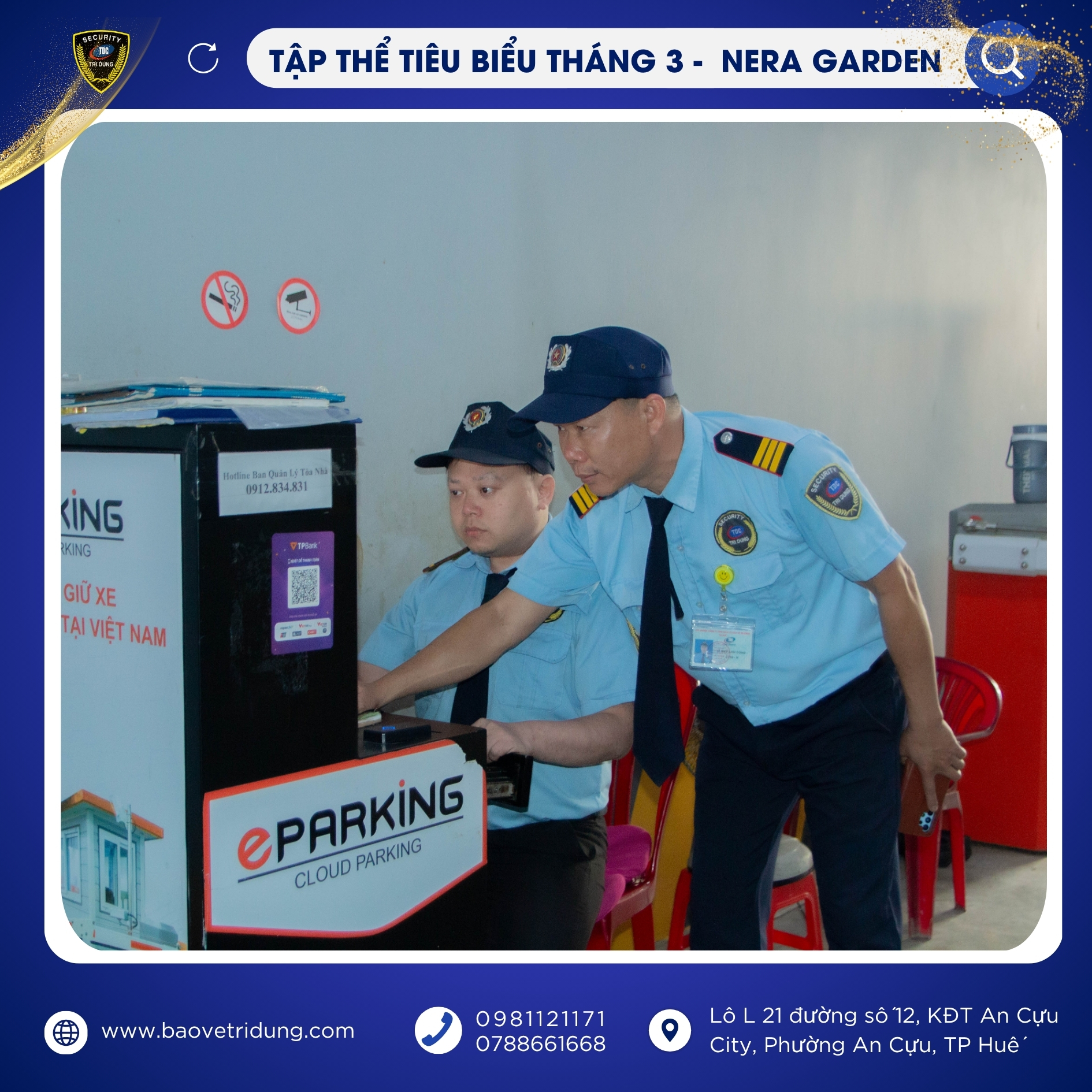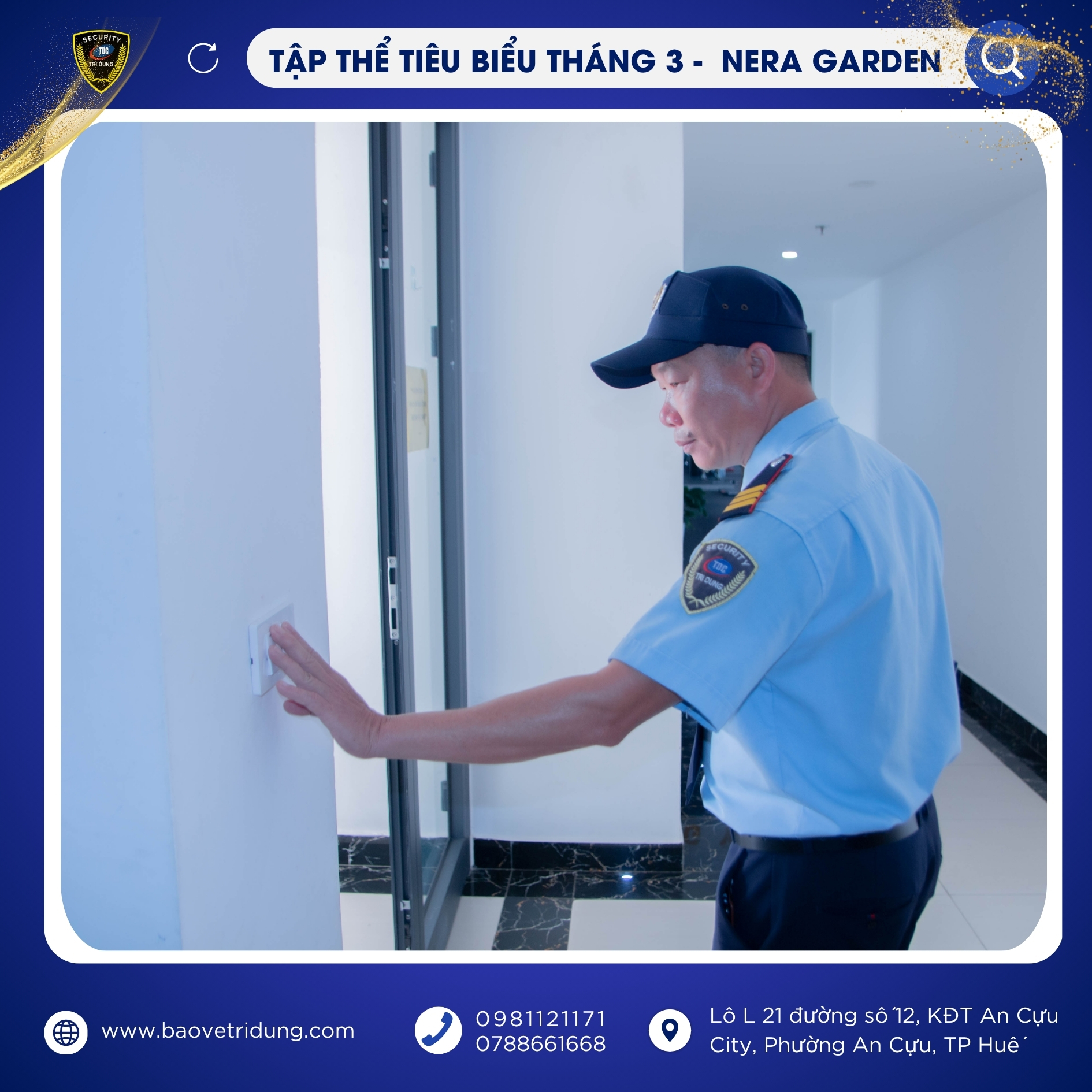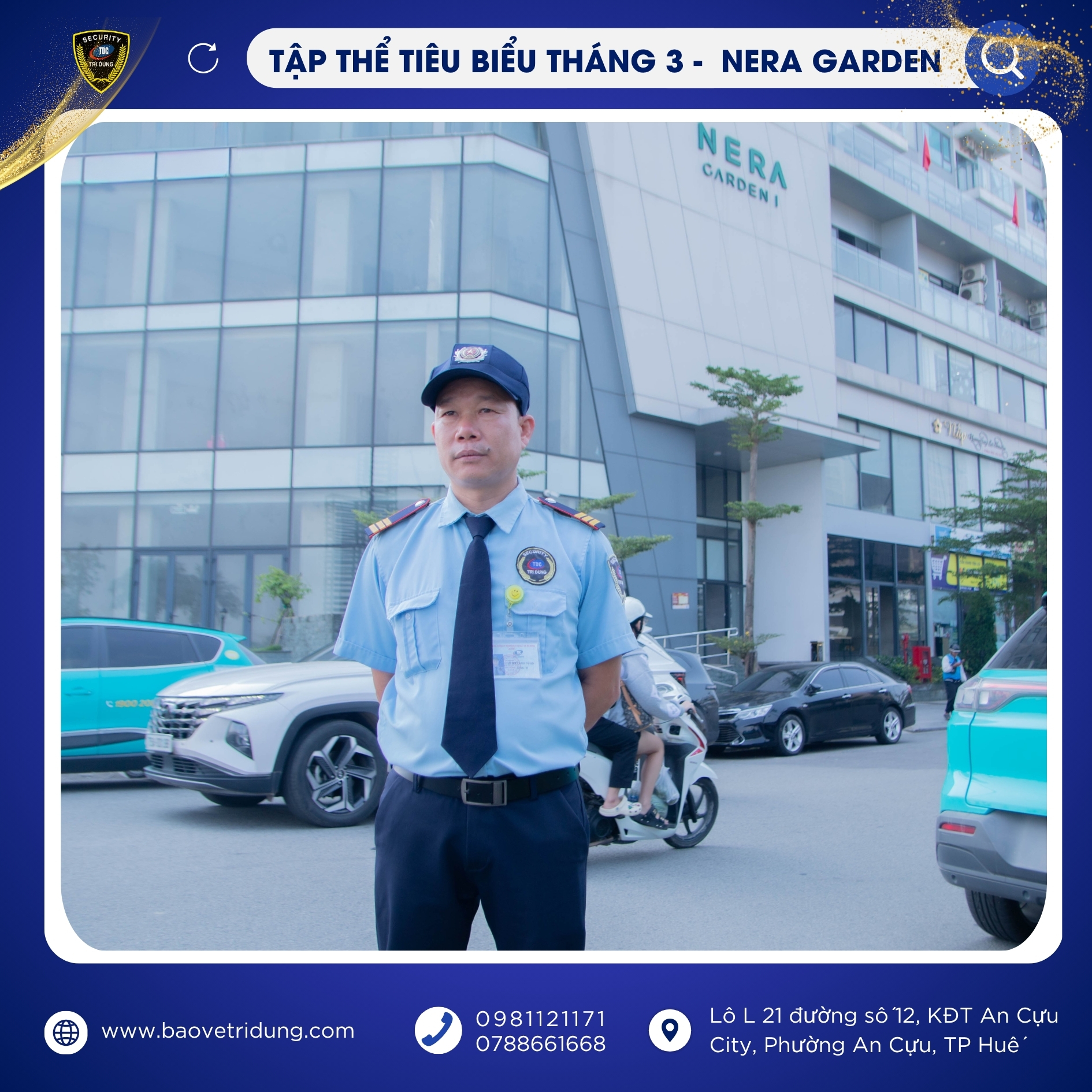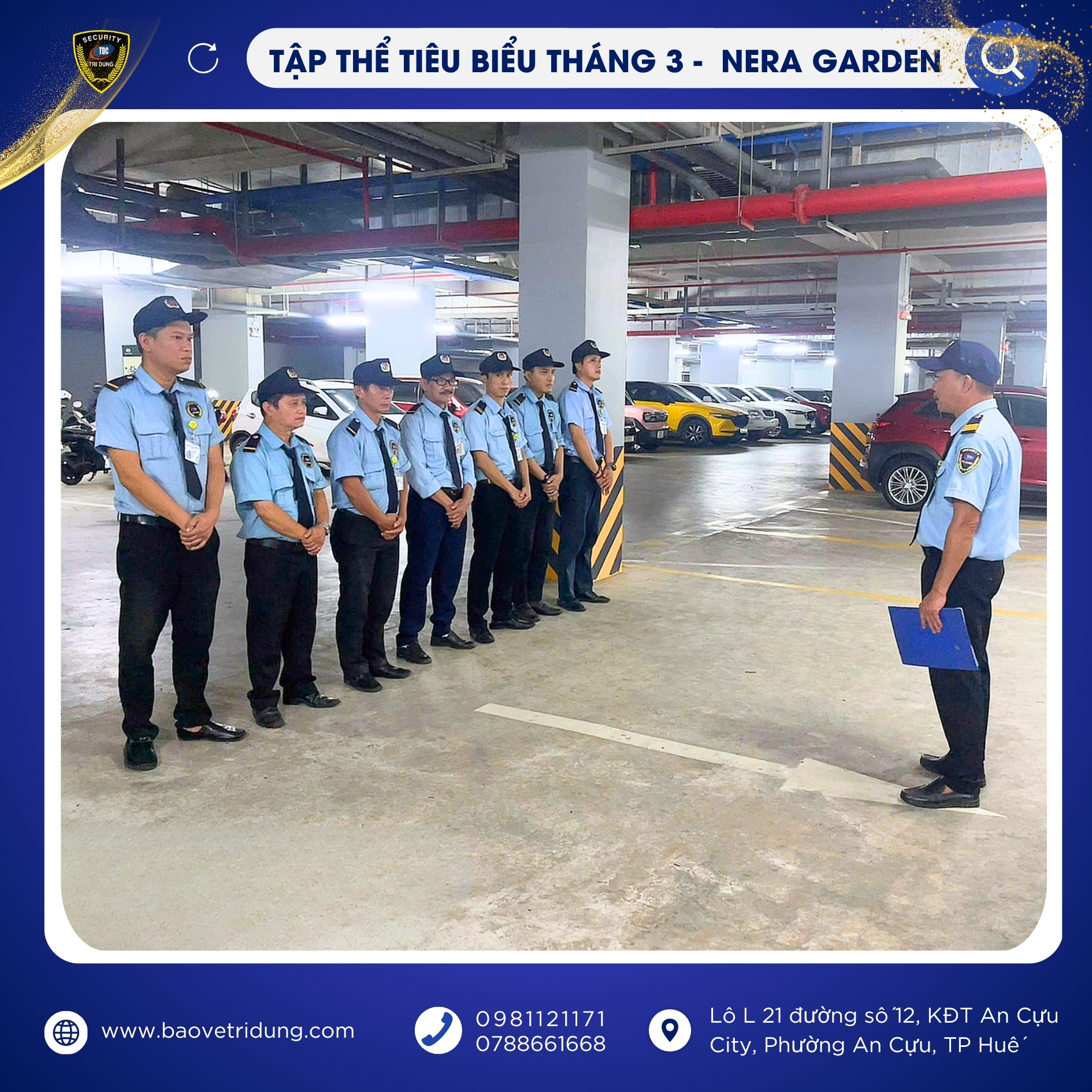 Trong đợt khen thưởng lần này, Tập thể mục tiêu NERA GARDEN được vinh danh là tập thể tiêu biểu tháng 3 nhờ tinh thần đoàn kết, phối hợp hiệu quả và luôn duy trì tốt công tác đảm bảo an ninh, an toàn tại mục tiêu. Sự chủ động, nghiêm túc trong từng ca trực của tập thể đã góp phần tạo nên hình ảnh chuyên nghiệp, uy tín của lực lượng bảo vệ Trí Dũng.