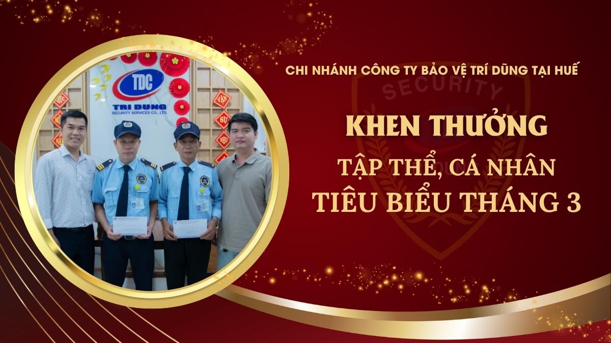 CHI NHÁNH CÔNG TY BẢO VỆ TRÍ DŨNG TẠI HUẾ KHEN THƯỞNG TẬP THỂ, CÁ NHÂN TIÊU BIỂU THÁNG 3