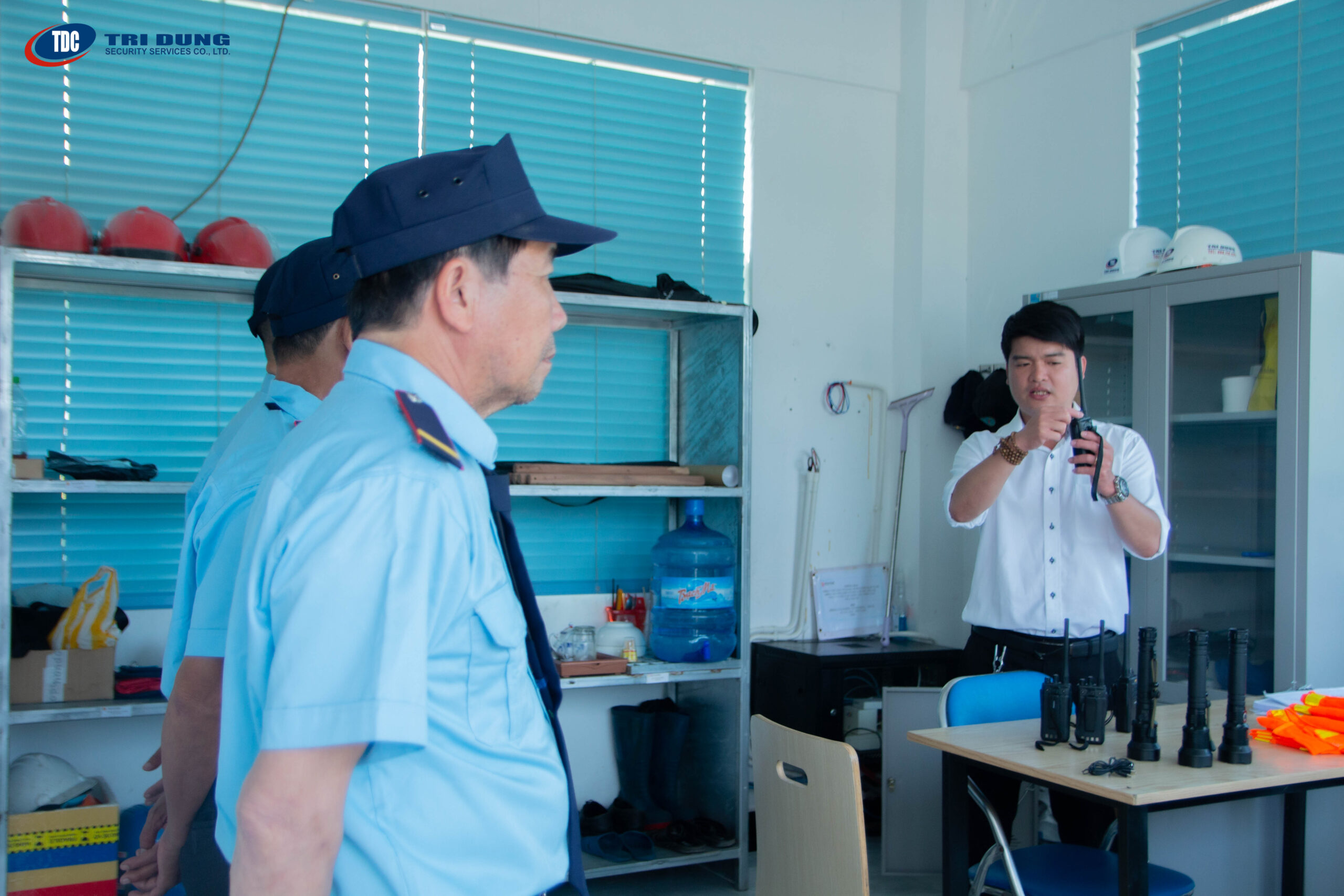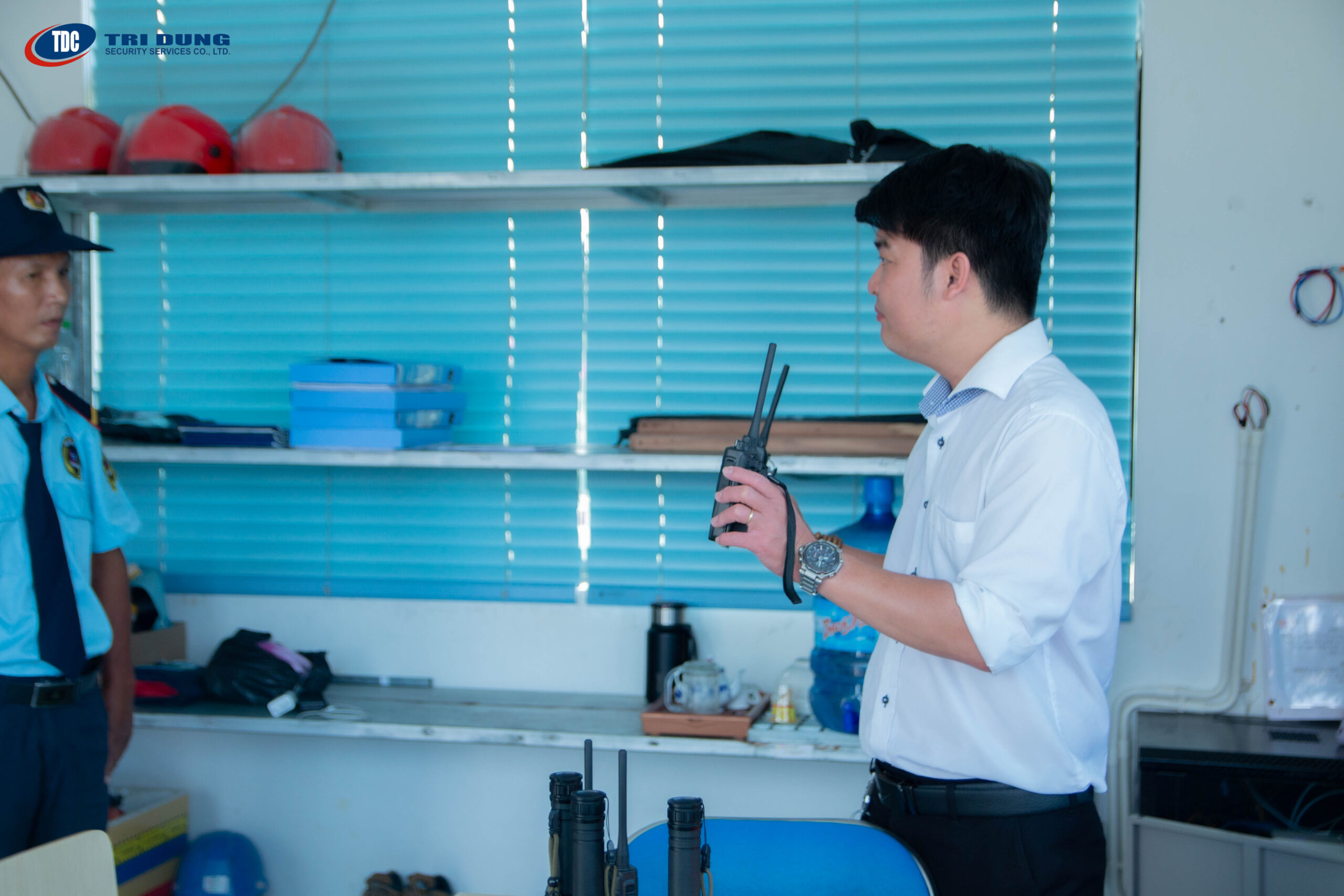 Bộ đàm là công cụ hỗ trợ đắc lực trong việc kết nối giữa các vị trí trực, giúp truyền tải thông tin kịp thời, đảm bảo sự phối hợp nhịp nhàng trong ca làm việc. Thông qua các buổi đào tạo định kỳ, nhân viên Trí Dũng được hướng dẫn sử dụng bộ đàm đúng quy trình, đúng thuật ngữ, rõ ràng và ngắn gọn, hạn chế tối đa sai sót trong quá trình trao đổi thông tin.