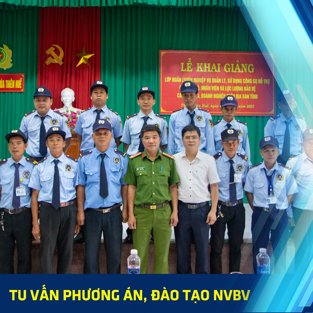 Đào tạo bảo vệ nội bộ: theo giáo trình chuẩn gồm nghiệp vụ bảo vệ, kiến thức pháp luật, kỹ năng xử lý sự cố, PCCC, sơ cấp cứu, kỹ năng giao tiếp, đạo đức nghề nghiệp…