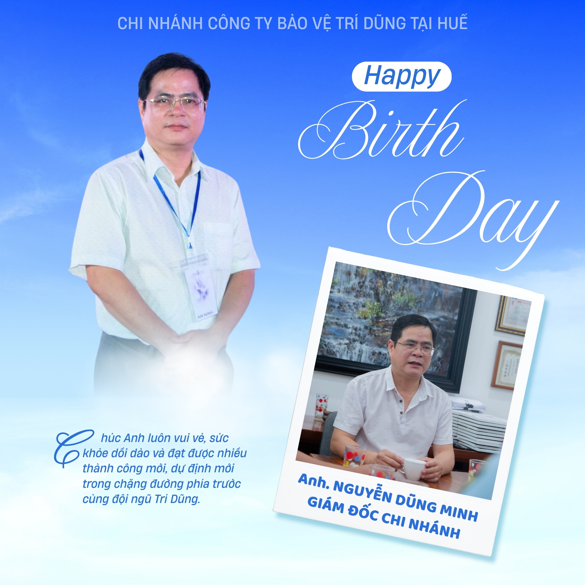 Chúc mừng Sinh nhật Anh NGUYỄN DŨNG MINH Giám đốc Chi nhánh Công ty Bảo vệ Trí Dũng tại Huế
