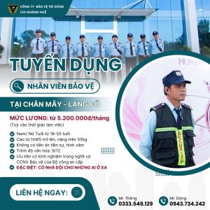 TUYỂN DỤNG 10 NHÂN VIÊN_BẢO VỆ TẠI KHU VỰC GẦN ĐƯỜNG TRÁNH HUẾ