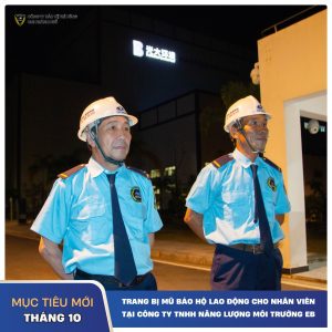 TRANG BỊ MŨ BHLĐ CHO BẢO VỆ TẠI CÔNG TY TNHH NĂNG LƯỢNG MÔI TRƯỜNG EB