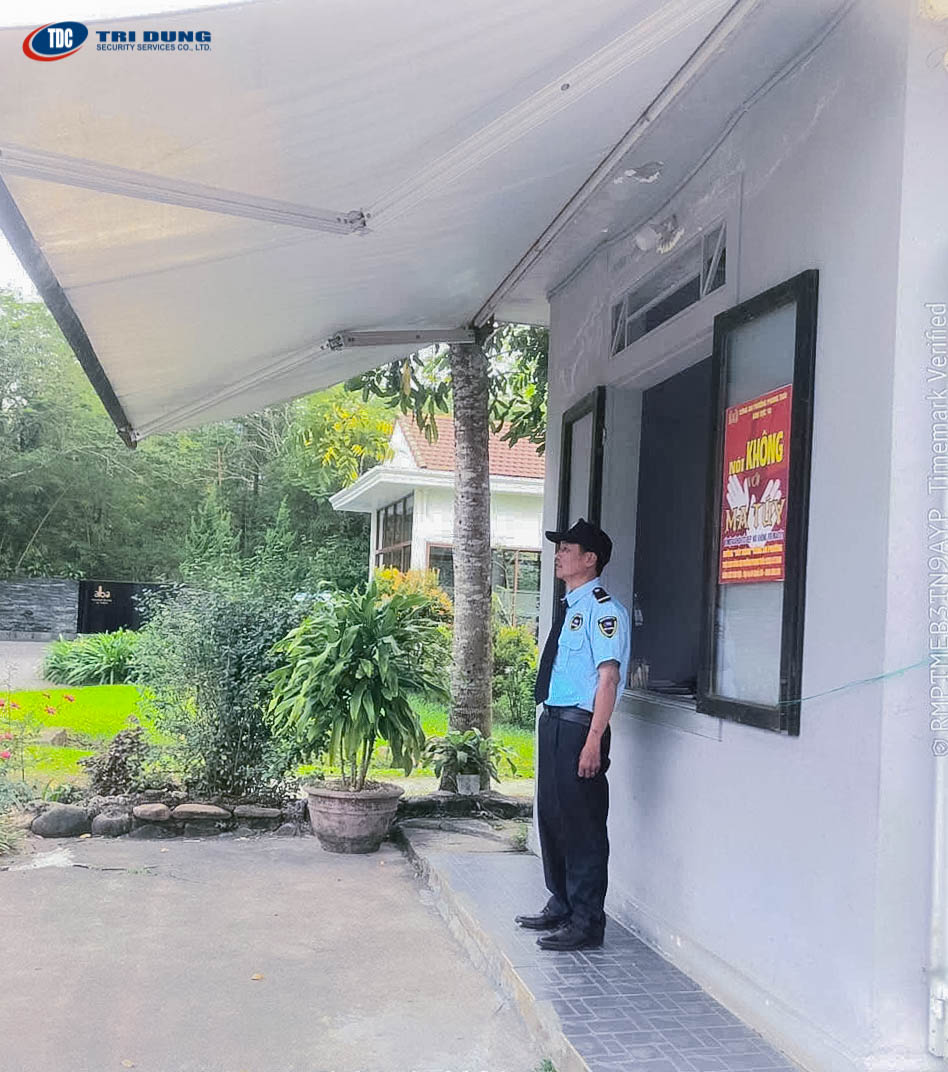 Nhân viên Trí Dũng luôn túc trực 24/7 tại cổng chính, thực hiện kiểm tra, giám sát nghiêm ngặt các hoạt động ra vào. Mọi quy trình đều được thực hiện bài bản, đúng quy định nhằm hạn chế tối đa các rủi ro về an ninh, đồng thời bảo vệ tài sản và sự an toàn của khách hàng cũng như khu nghỉ dưỡng.