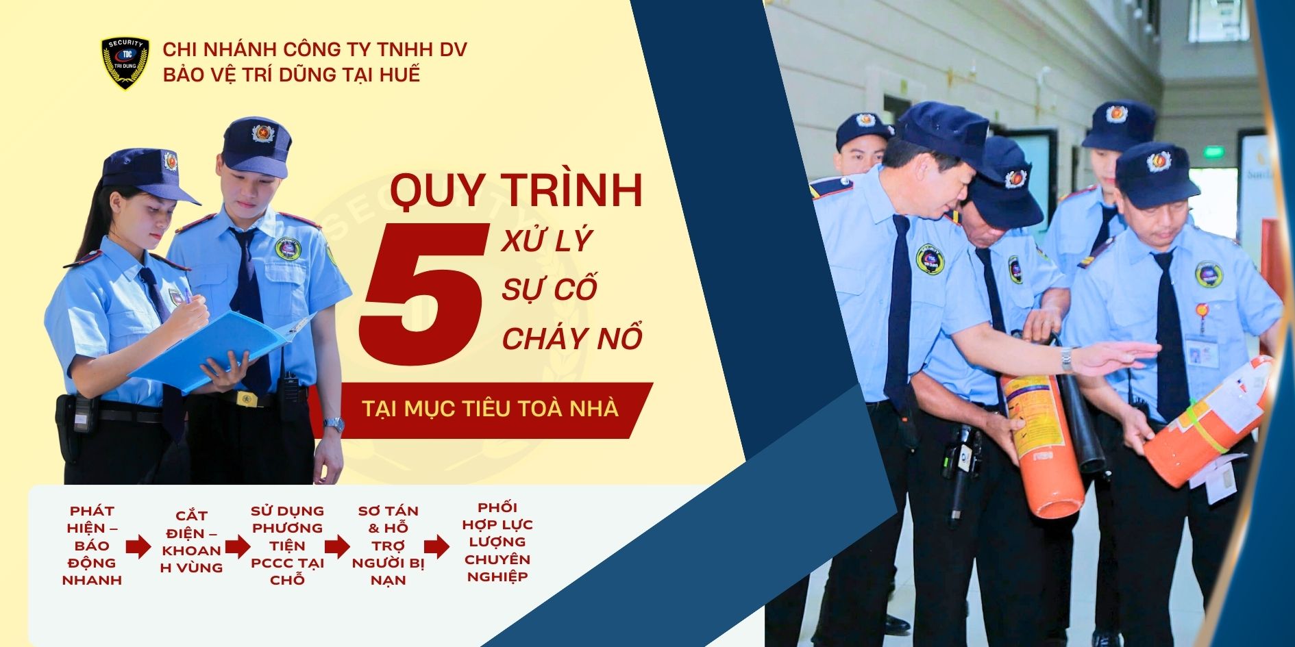 Trong các mục tiêu tòa nhà, nơi tập trung đông người và chứa nhiều tài sản có giá trị, việc đảm bảo an toàn phòng cháy chữa cháy luôn là nhiệm vụ ưu tiên hàng đầu. Nhận thức rõ điều đó, Bảo vệ Trí Dũng xây dựng và triển khai quy trình xử lý sự cố cháy nổ rõ ràng, chuyên nghiệp, đảm bảo ứng phó nhanh – chính xác – hiệu quả khi tình huống xảy ra.